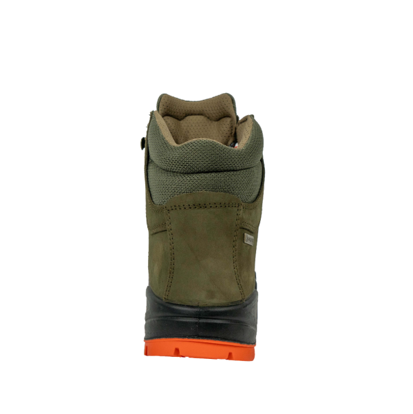 Botas de caza confeccionadas con piel nobuck hidro-repelente de 1,8 a 2mm de espesor en color verde bosque, partes de cordura, costuras e hilos convenientemente hidrofugados según las directivas de Gore Tex.