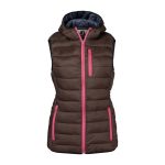 Bonito chaleco de mujer, con cremalleras fucsia de alta visibilidad y capucha.