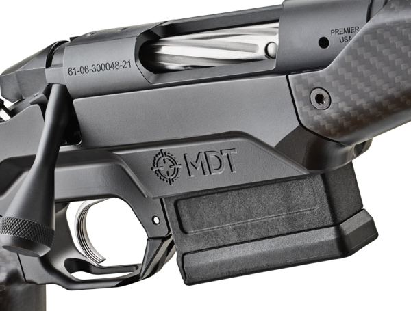 La acción Premier está diseñada como un sistema de dos tetones que cuenta con un cabezal flotante para garantizar el contacto con los pilares de la acción. También cuenta con un cerrojo en forma de cono para una alimentación suave del proyectil, y un extractor de placa deslizante ubicado en la parte frontal. El cuerpo del cerrojo es una pieza de acero inoxidable. El cerrojo, el protector de gas no giratorio, y la acción están totalmente nitrurados para una durabilidad extrema, así como sus propiedades de auto lubricación.