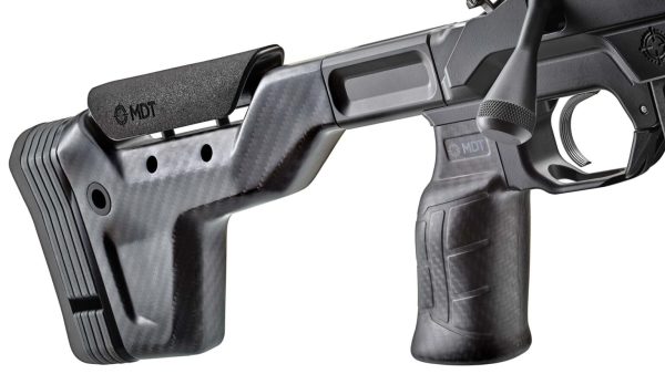 Se trata del chasis de rifle más ultraligero del mercado, con un peso inicial de 700 gr. El chasis MDT HNT26 está fabricado con una culata/base de aleación de magnesio, con una delantera de fibra de carbono, una empuñadura de pistola de fibra de carbono y una cantonera de fibra de carbono rellena de espuma que ayuda a amortiguar las vibraciones y la sensación de retroceso, mejorando la estabilidad de los disparos de seguimiento.